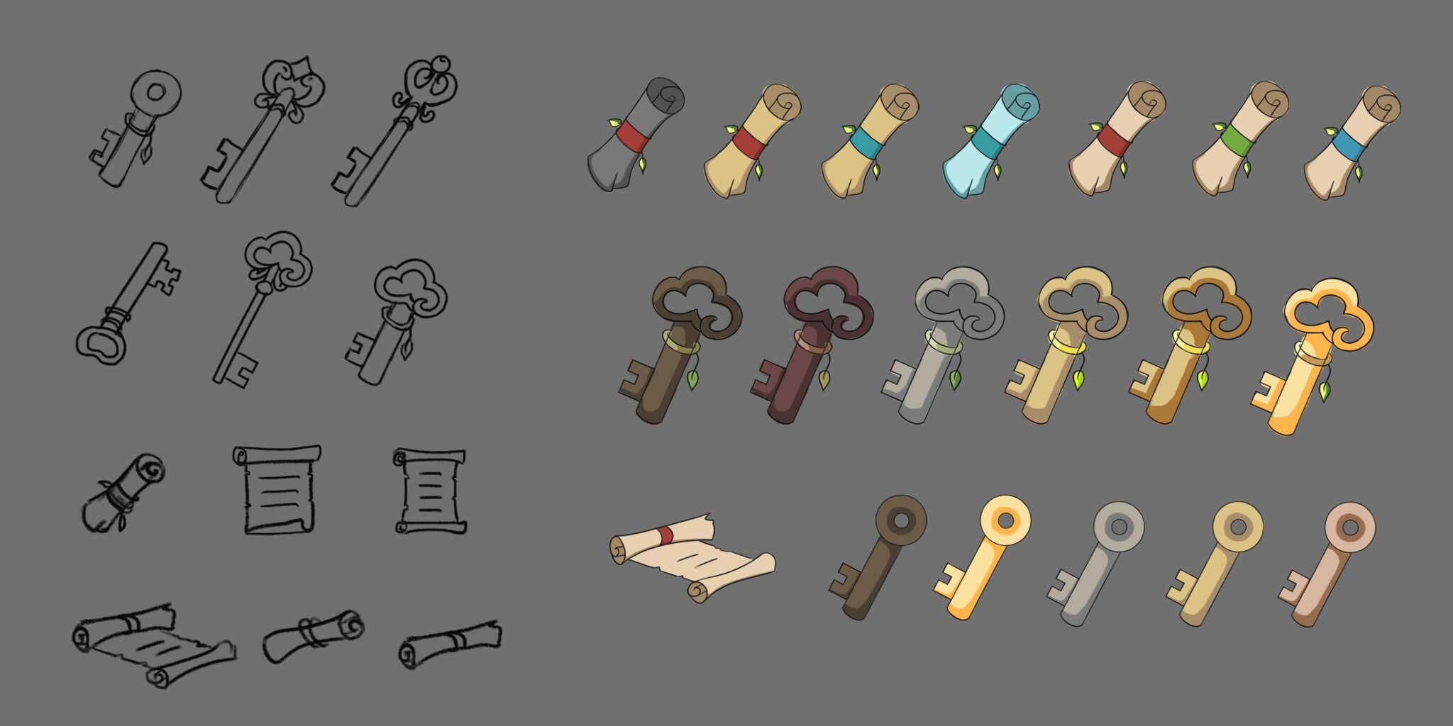 Ícones de Inventário: Pergaminhos e Chaves