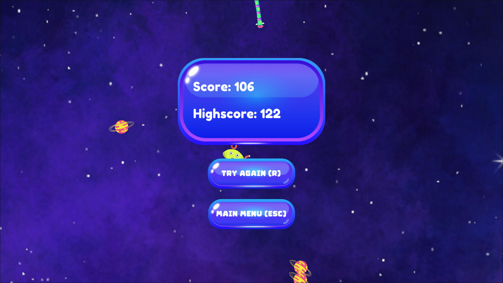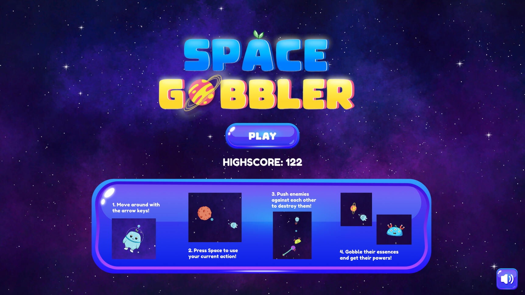 Destrói inimigos e sobrevive! Engole-os para absorver os seus poderes!Space Gobbler foi desenvolvido para a jam Minigame a Month: Fevereiro 2024, com o tema opcional "Espaço".Ano: 2024